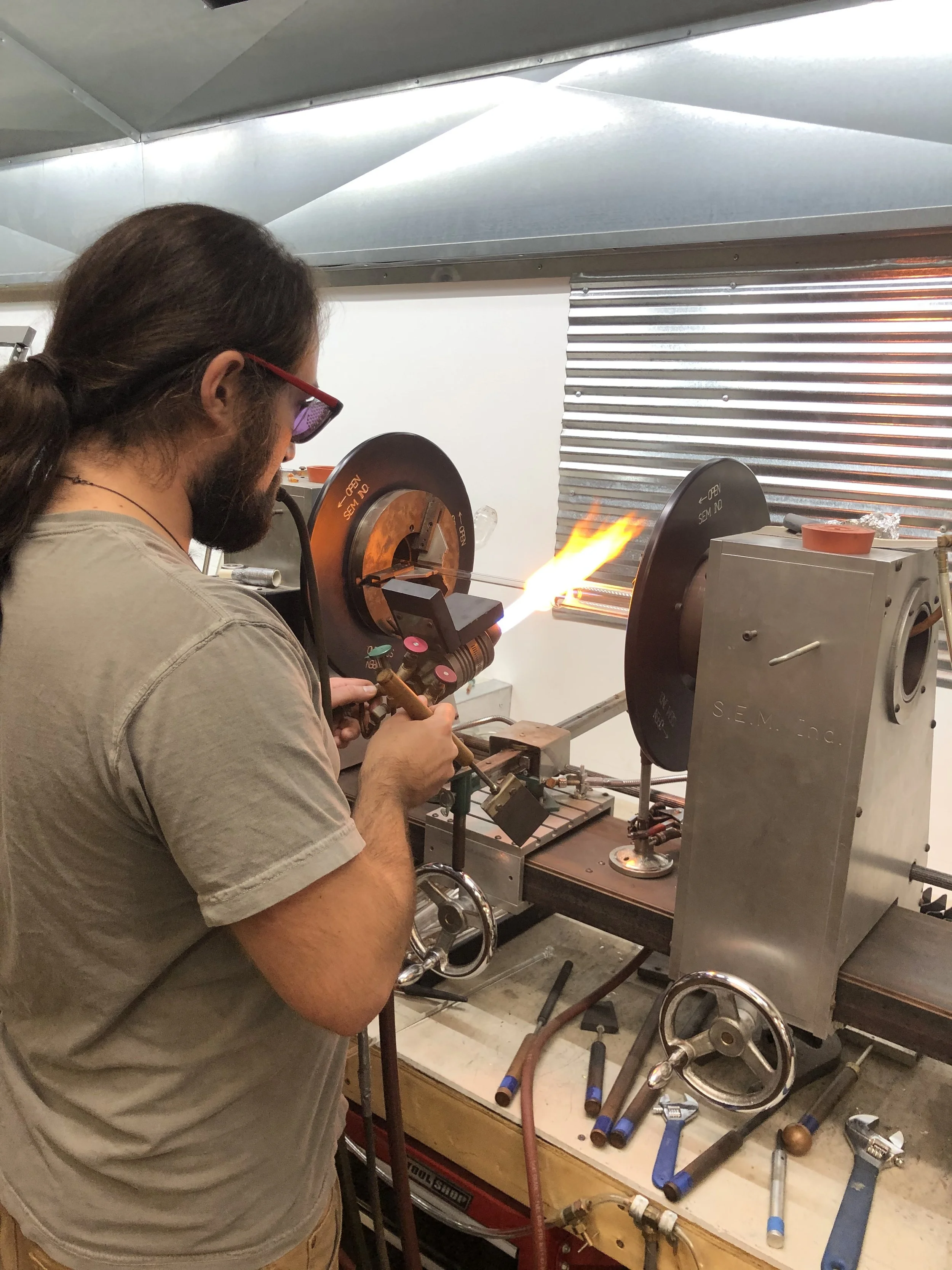 Mago Glass is ran by the artist Andrew Remer and is based out of Duluth, Minnesota. Andrew has been working with glass and copper electroforming since 2016. Over that time he has made relationships with shops nationwide, exhibited in Glassroots Tradeshow, as well as presented work at the Minnesota Renaissance Festival.